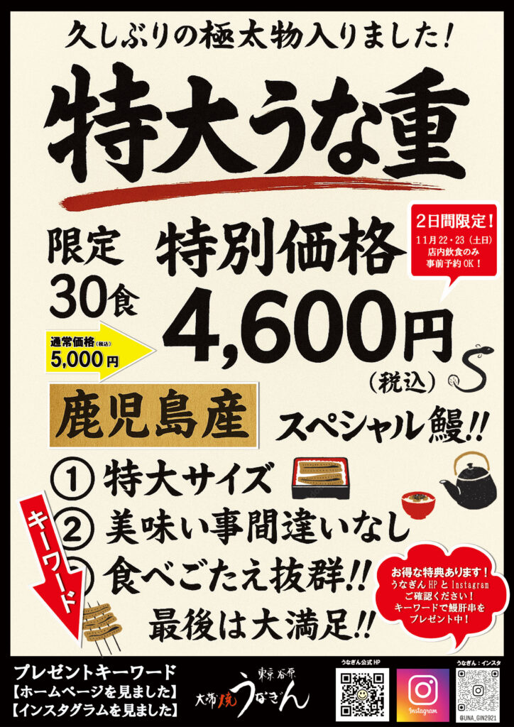 ※お土産の地うなぎには串焼は付きませんのでご了承ください。